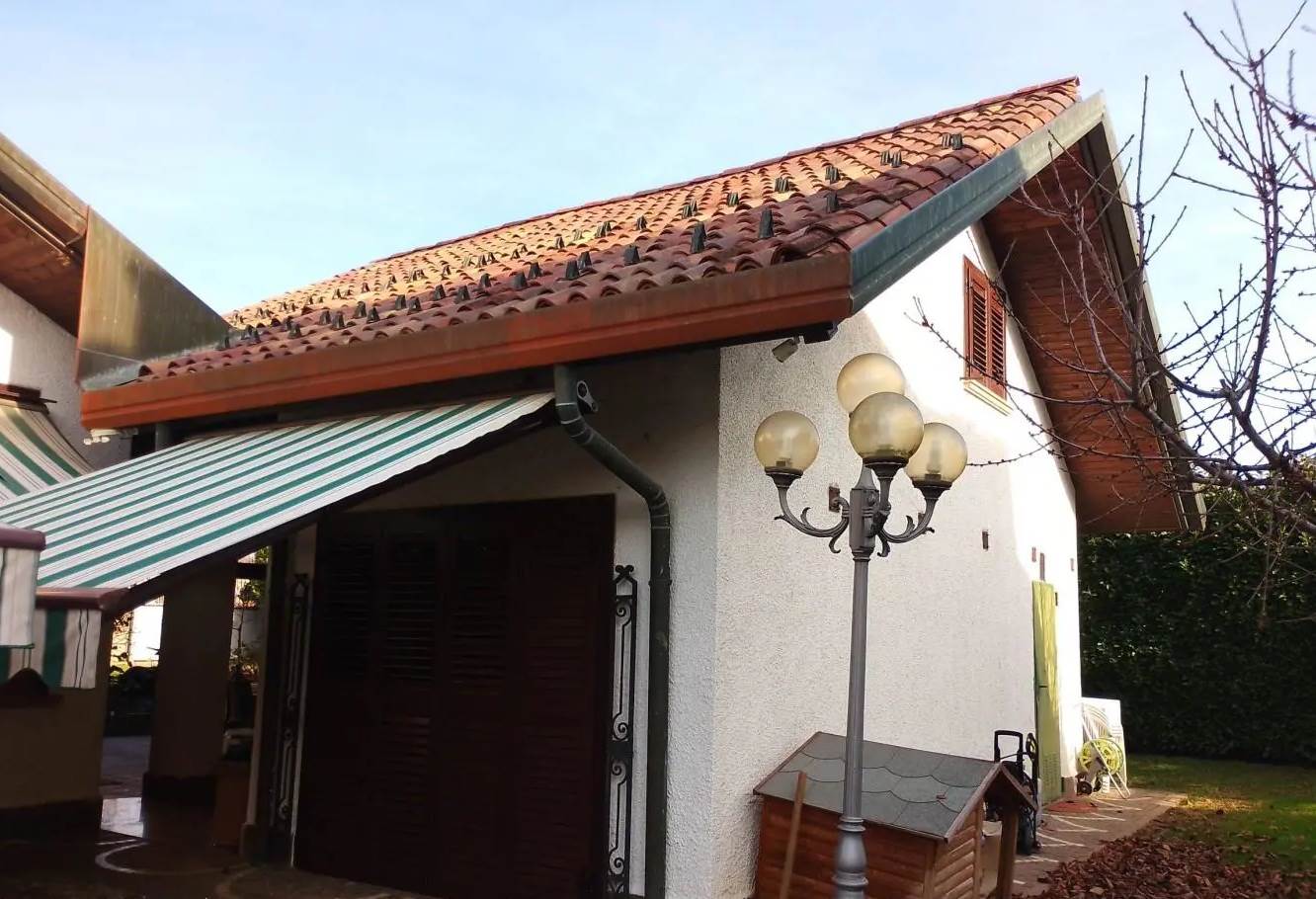 L’abitazione principale si sviluppa su tre livelli. Al piano terra si accede nella zona giorno composta da soggiorno, sala da pranzo, cucina e bagno; una scala interna collega i piani superiori. Al primo piano si trovano tre camere, un bagno e un ripostiglio, mentre al secondo piano è presente un sottotetto. L’immobile gode inoltre della presenza di un ampio giardino comune che valorizza l’intero contesto.