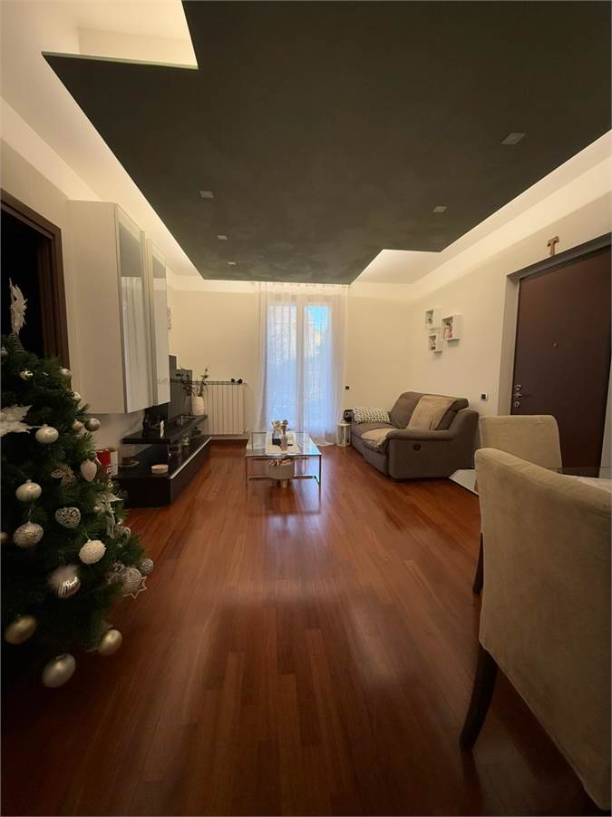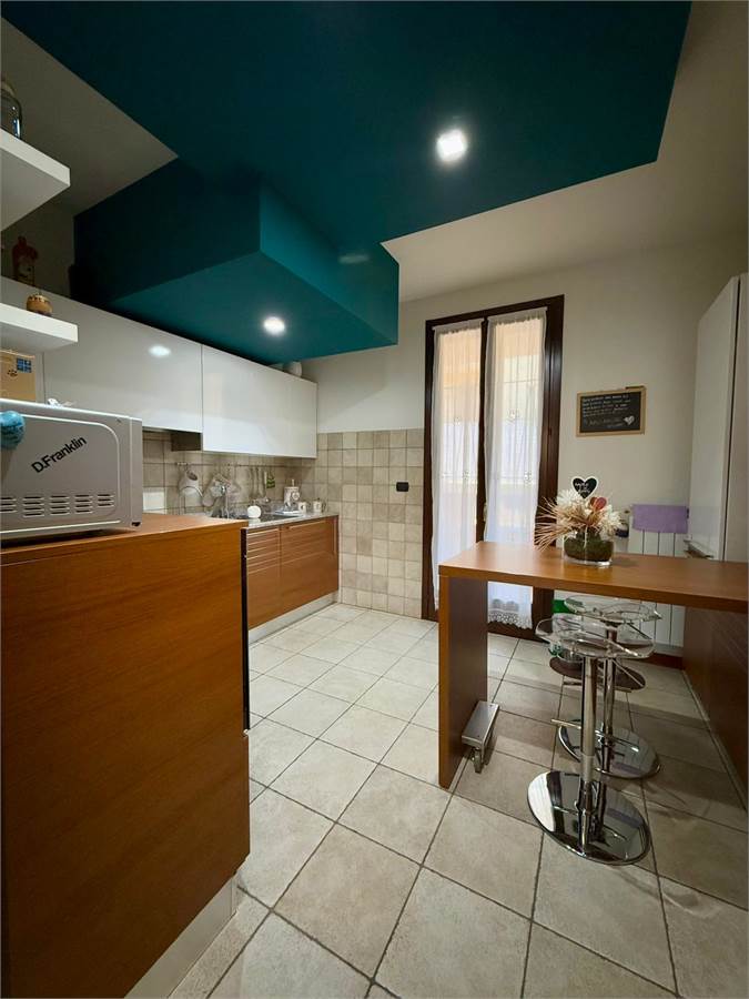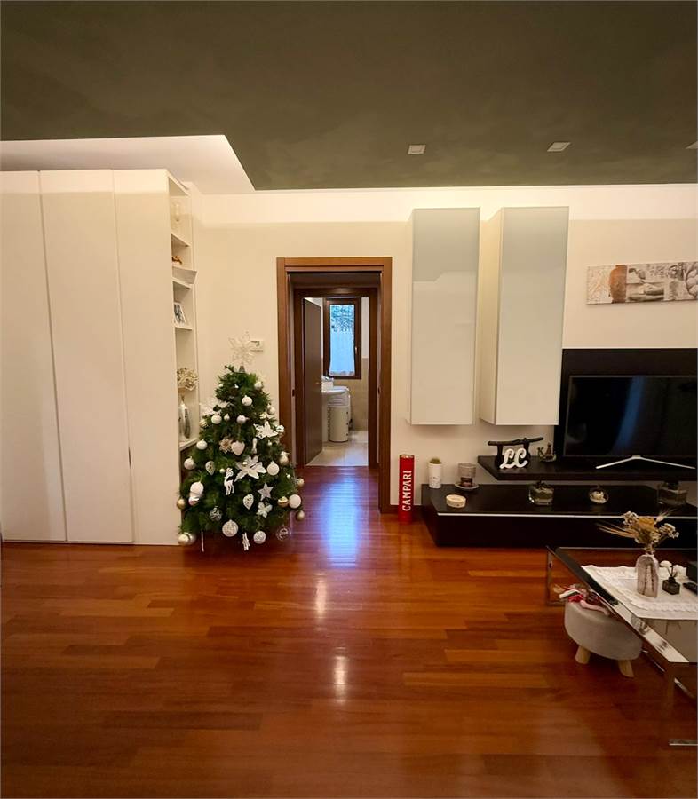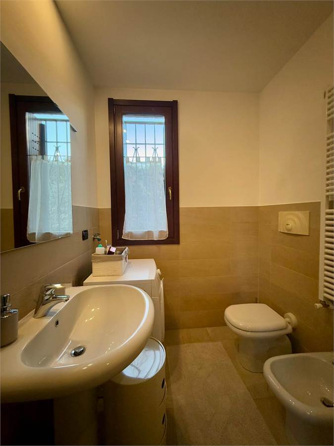 L’appartamento è composto da un ampio e luminoso soggiorno con affaccio diretto sul portico e sul giardino, caratterizzato da pavimentazione in parquet, una cucina abitabile di generose dimensioni con uscita su un bellissimo terrazzo, perfetto per pranzi e cene all’aperto. Un comodo disimpegno conduce alla zona notte, dove troviamo una camera matrimoniale con affaccio sul giardino privato, anch’essa con pavimento in parquet, una cameretta ampia con pavimentazione in parquet e accesso al terrazzo, e due bagni finestrati, uno con doccia e uno con vasca.